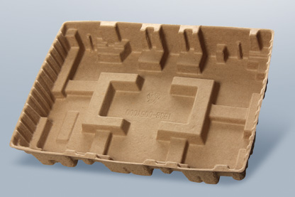 Ce type de fibre moulée plus raffiné est, lui aussi, fabriqué sur une ligne conventionnelle. Par rapport aux produits formés, ils sont ensuite pressés. Le pressage confère une surface lisse à la matière et aux produits. Les emballages fabriqués en utilisant cette technique serviront notamment à emballer des produits électroniques, remplaçant ainsi de plus en plus les matériaux d’emballage traditionnels que sont le plastique, le polystyrène, etc.